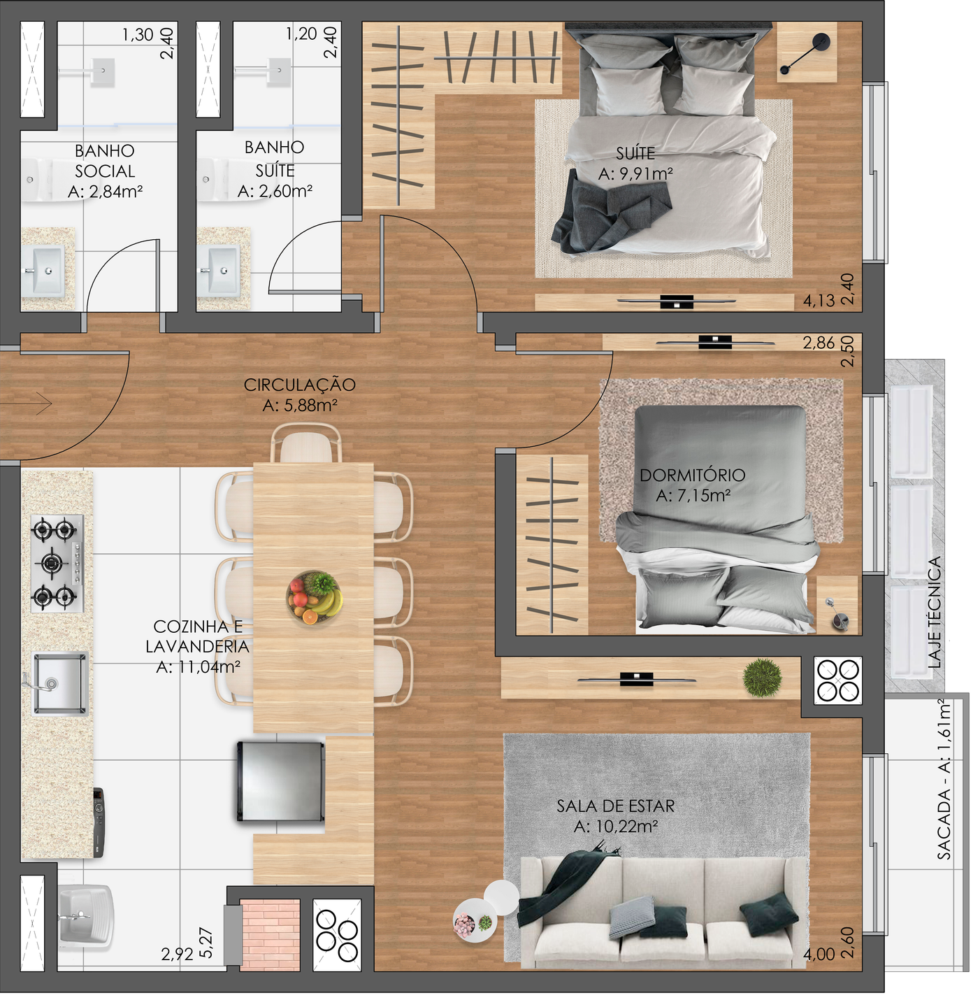 Área Total › 66,00m²