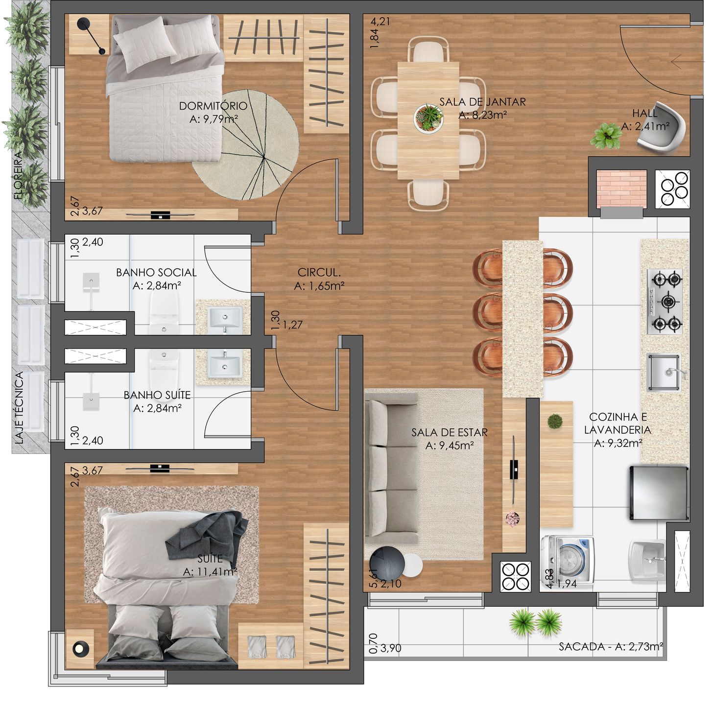 Área Privativa › 66,00m²