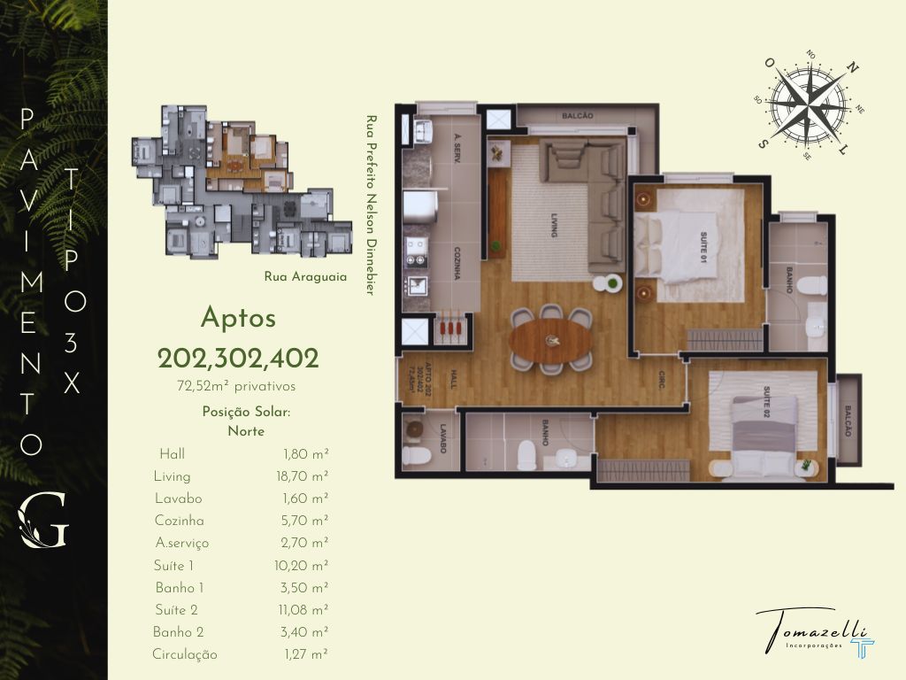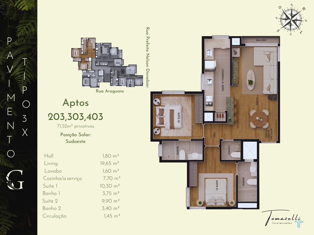 2 Dorm. | 2 Suíte(s) | 1 Vaga(s)